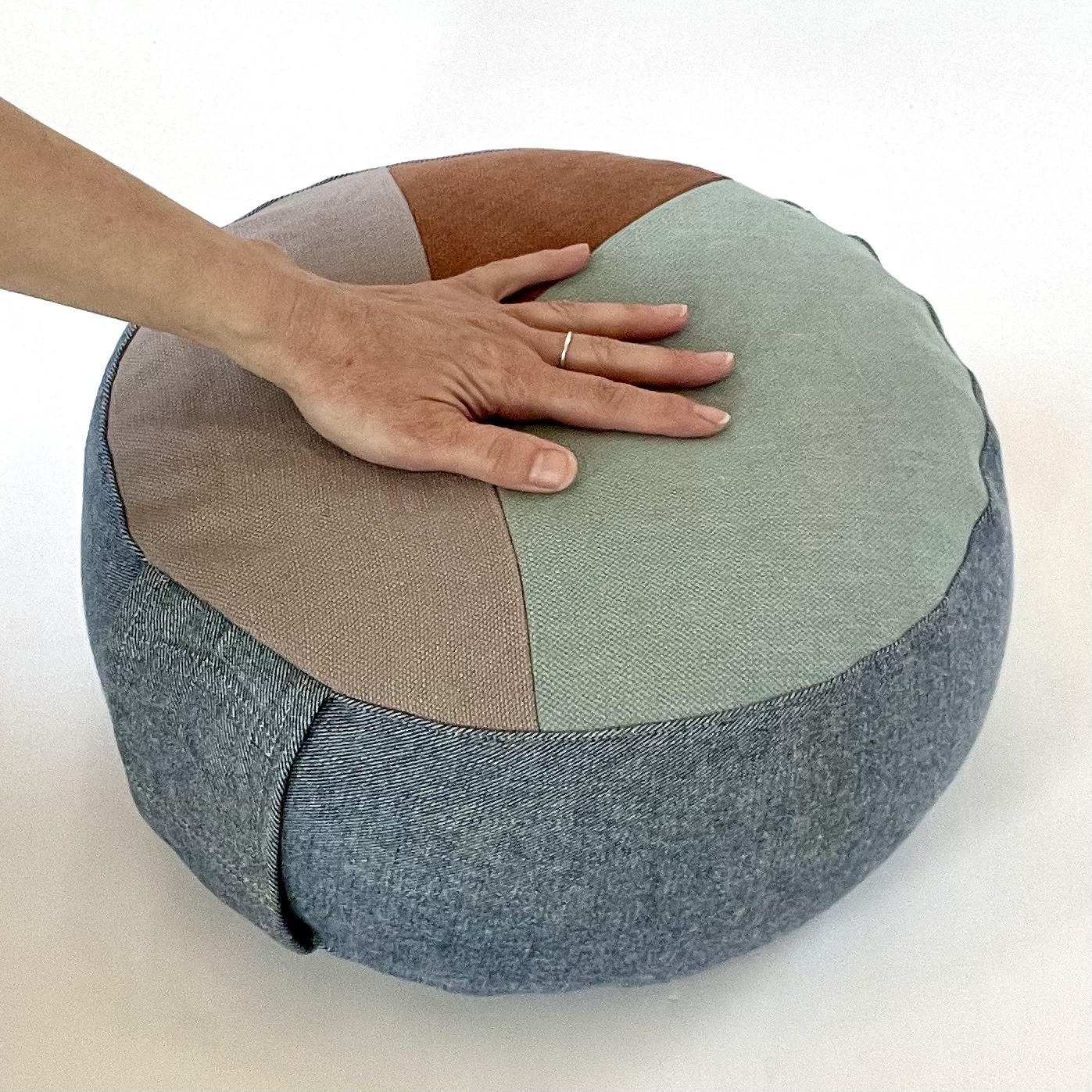 Eye catching buckwheat cushion, perfect to integrate in your yoga & meditation practice. Our pouffes are sturdy and offer support, but at the same time are soft and comfortable for long sitting meditations. A pouffe can also be used as a cosy seat for the kids and will look great in your seating area.
